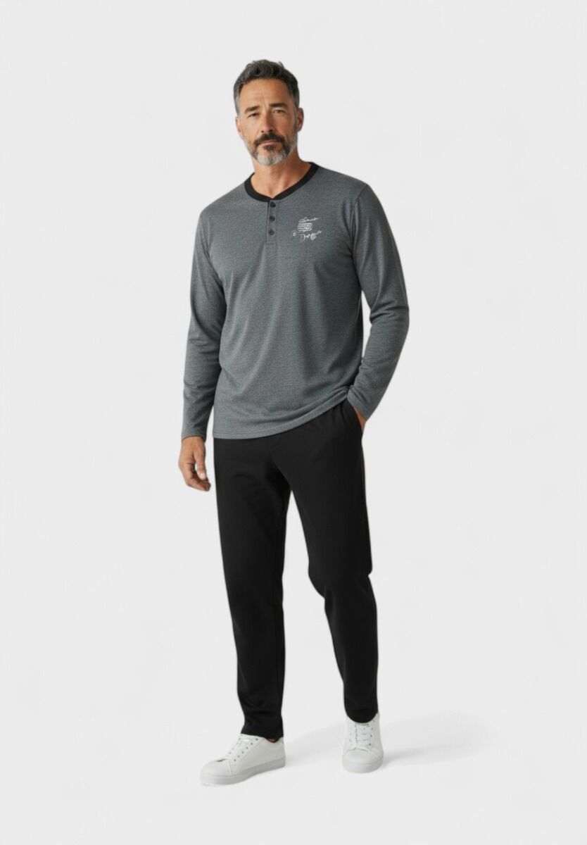 Ανακάλυψε την απόλυτη άνεση με την ανδρική πιτζάμα φούτερ Collection Stamp σε ανθρακί απόχρωση.
