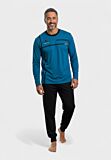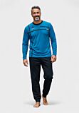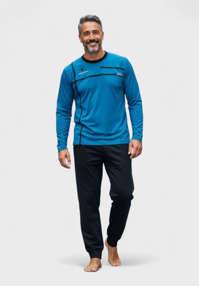 Ανακάλυψε την ανδρική βαμβακερή πιτζάμα Interlock Collection, ιδανική για ζεστασιά και άνεση τους κρύους μήνες. Το σετ περιλαμβάνει μακρυμάνικη μπλούζα σε έντονο μπλε χρώμα με μοντέρνες λεπτομέρειες σε μαύρο, καθώς και μαύρο παντελόνι με λάστιχο στη μέση για τέλεια εφαρμογή. Κατασκευασμένη από 100% βαμβακερό interlock ύφασμα, εξασφαλίζει απαλότητα, αντοχή και cozy αίσθηση, κάνοντάς την ιδανική επιλογή για χαλάρωση στο σπίτι ή άνετο ύπνο.