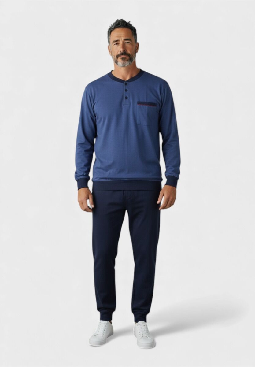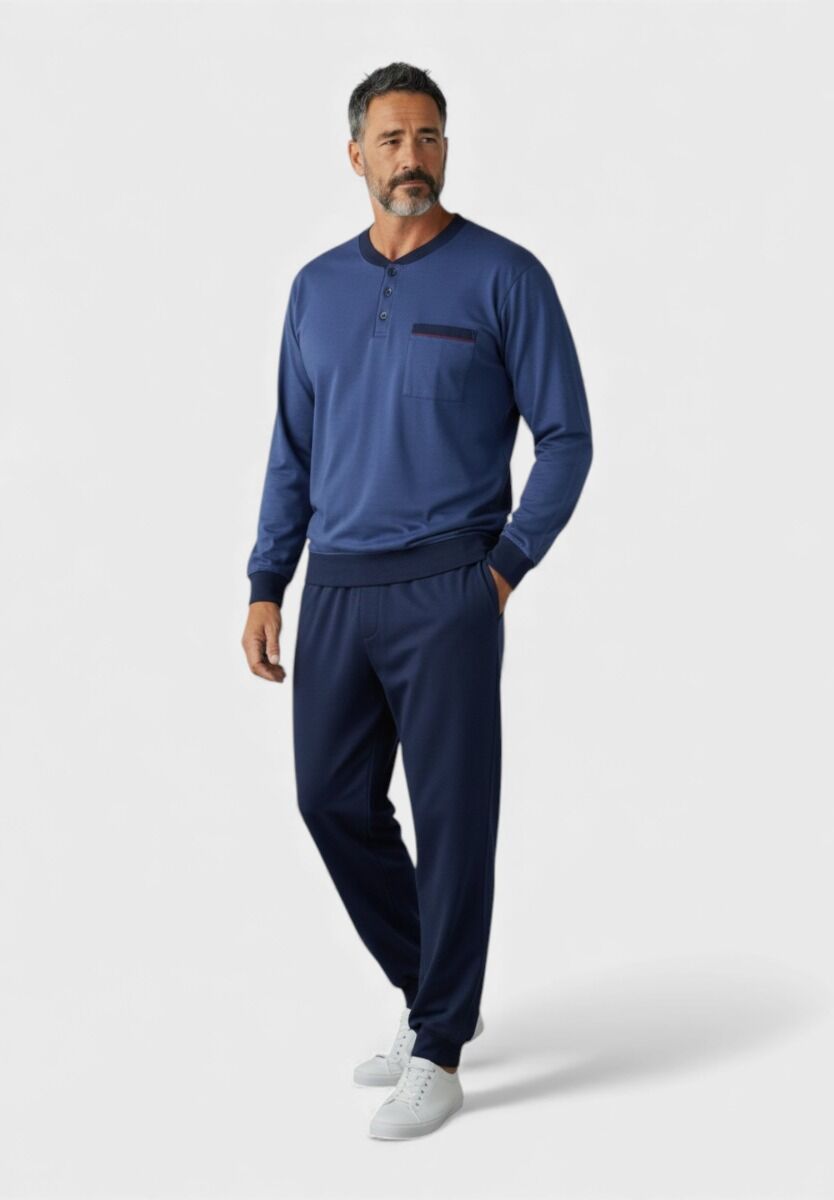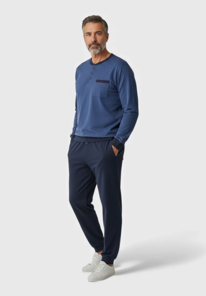 Θα αξιολογήσετε: Ανδρική Βαμβακερή Φούτερ Πιτζάμα Collection Μπλε με Κουμπί στο Παντελόνι
