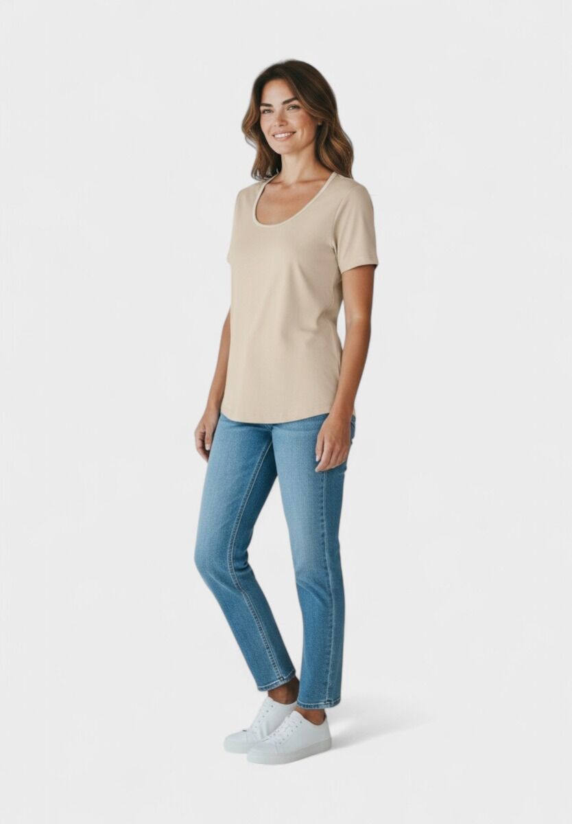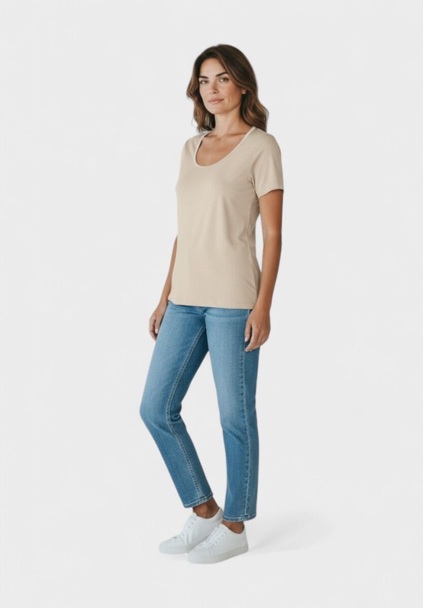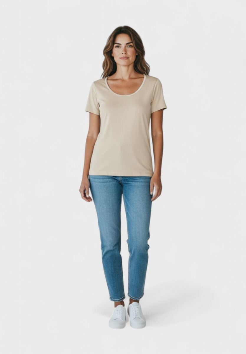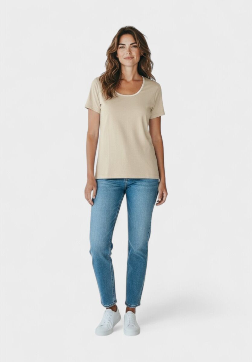 Φανελάκι γυναικείο Eleana με κοντό μανίκι, κατασκευασμένο από 100% αγνό βαμβάκι για απόλυτη άνεση και φυσική αίσθηση. Διαθέτει διακριτικό σατέν ρέλι στο ντεκολτέ, προσθέτοντας μια κομψή και θηλυκή πινελιά. Η εφαρμογή του είναι ελαφρώς στενή, αγκαλιάζοντας το σώμα χωρίς να περιορίζει την κίνηση. Ιδανικό για καθημερινή χρήση, είτε ως εσώρουχο είτε ως basic top για casual εμφανίσεις.