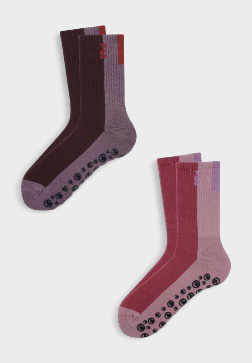 Το σετ περιλαμβάνει 2 ζευγάρια σε αποχρώσεις του μπορντό, λιλά και κόκκινου, με εντυπωσιακή διχρωμία και λογότυπο Fila στο τελείωμα.