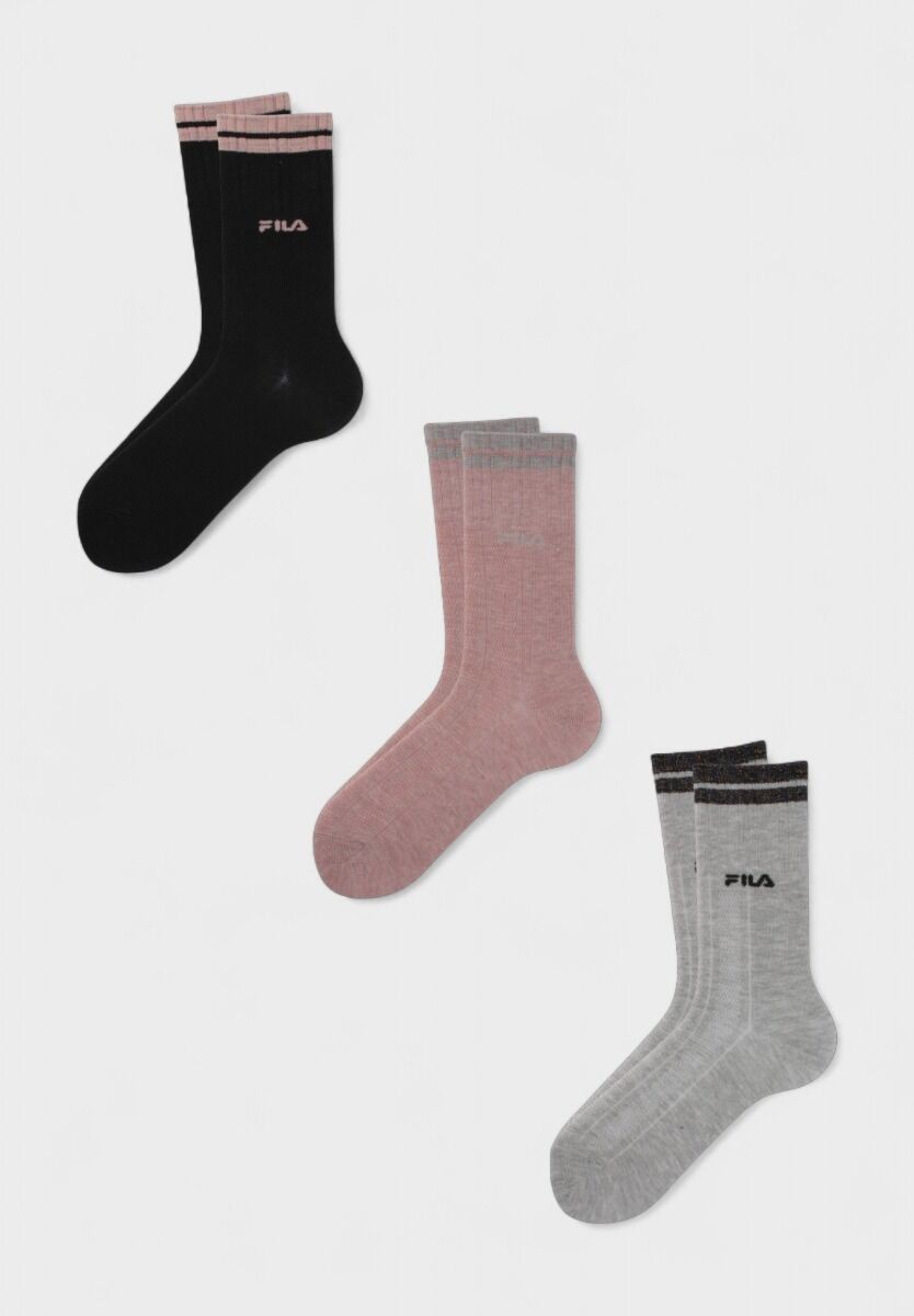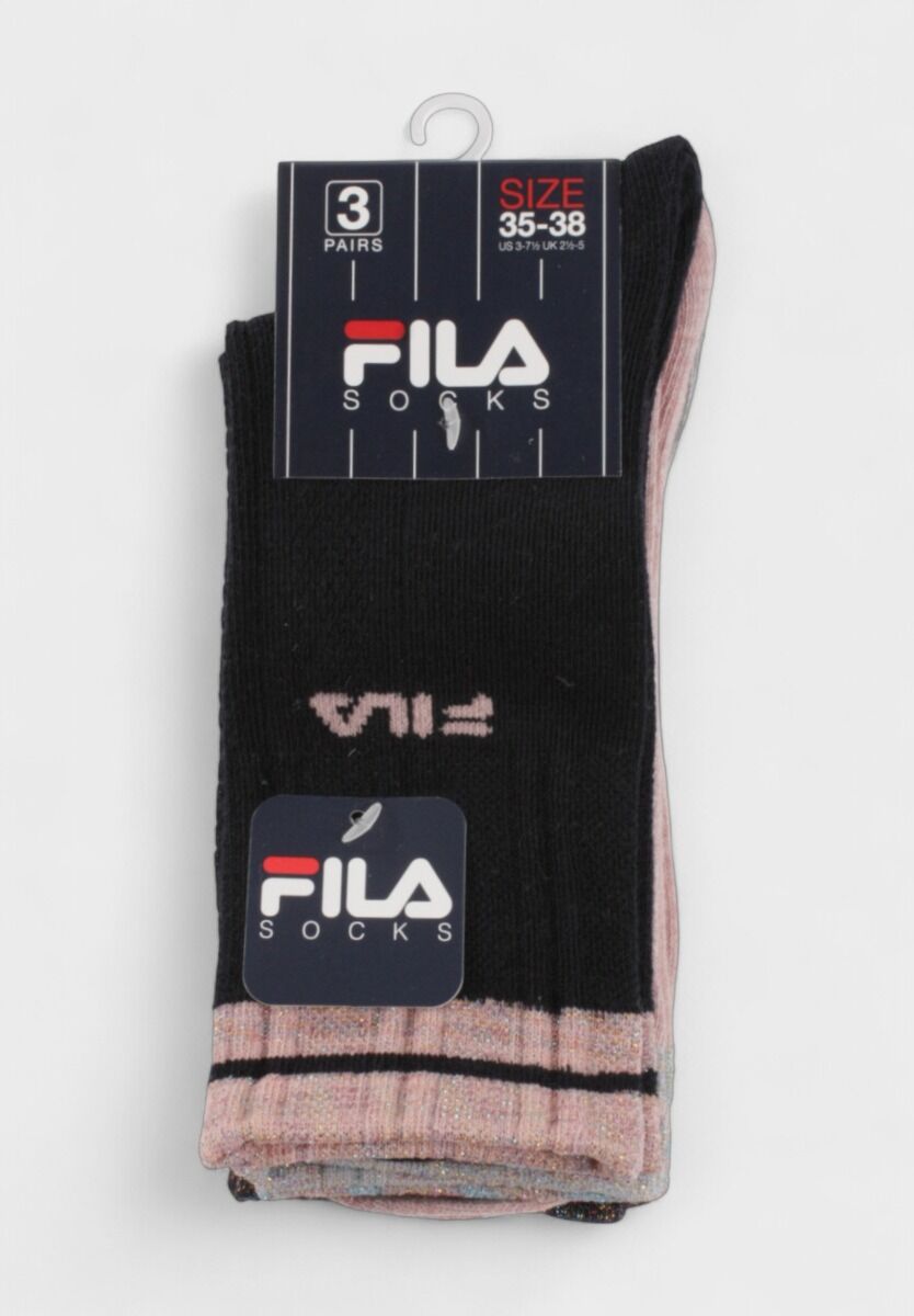 Οι παιδικές κάλτσες FILA F8207 προσφέρουν άνεση και στυλ για κάθε στιγμή της ημέρας. Το σετ περιλαμβάνει 3 ζευγάρια σε αποχρώσεις μαύρου, ροζ και γκρι με διακριτικές ρίγες στο επάνω μέρος και το χαρακτηριστικό λογότυπο FILA.