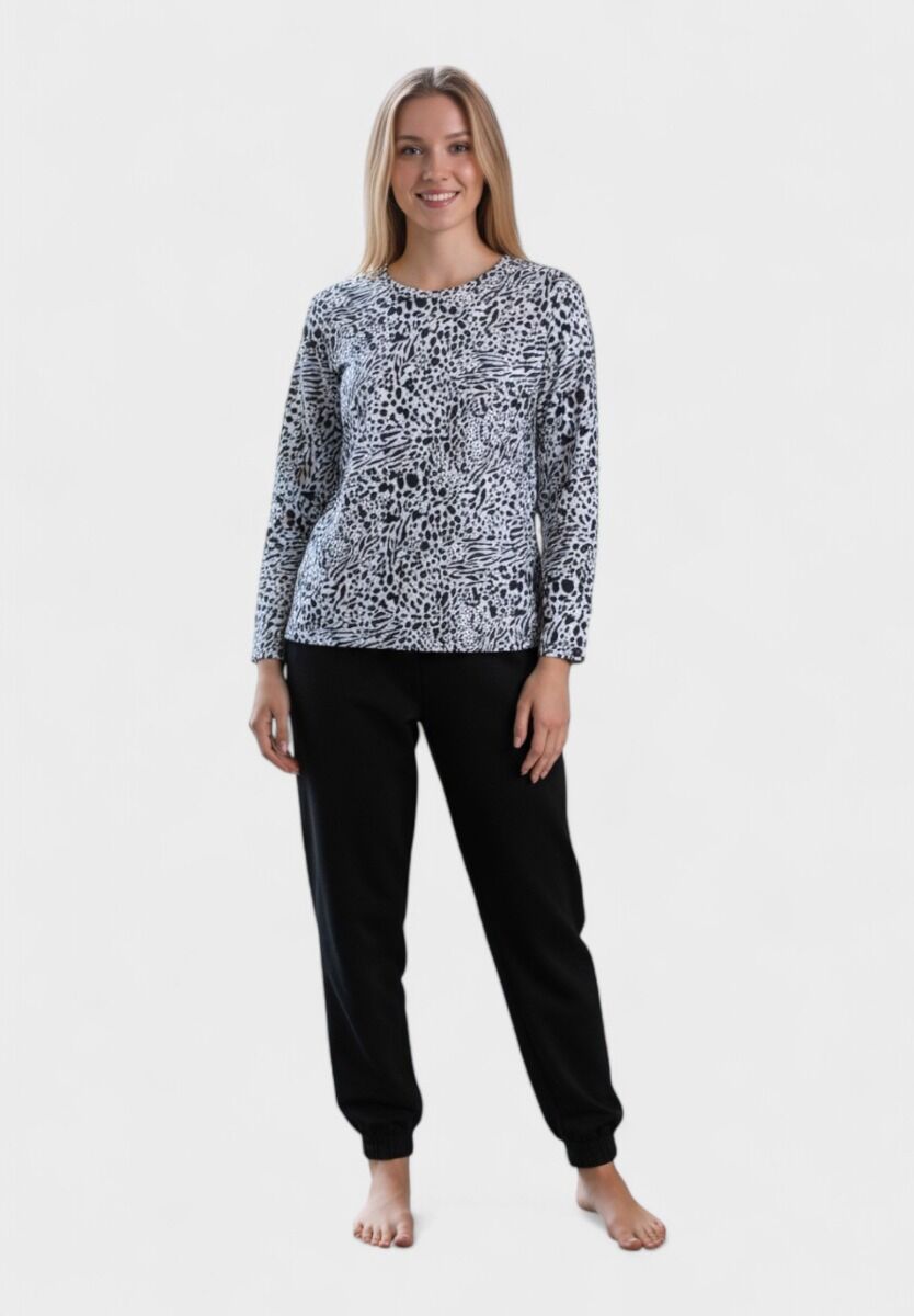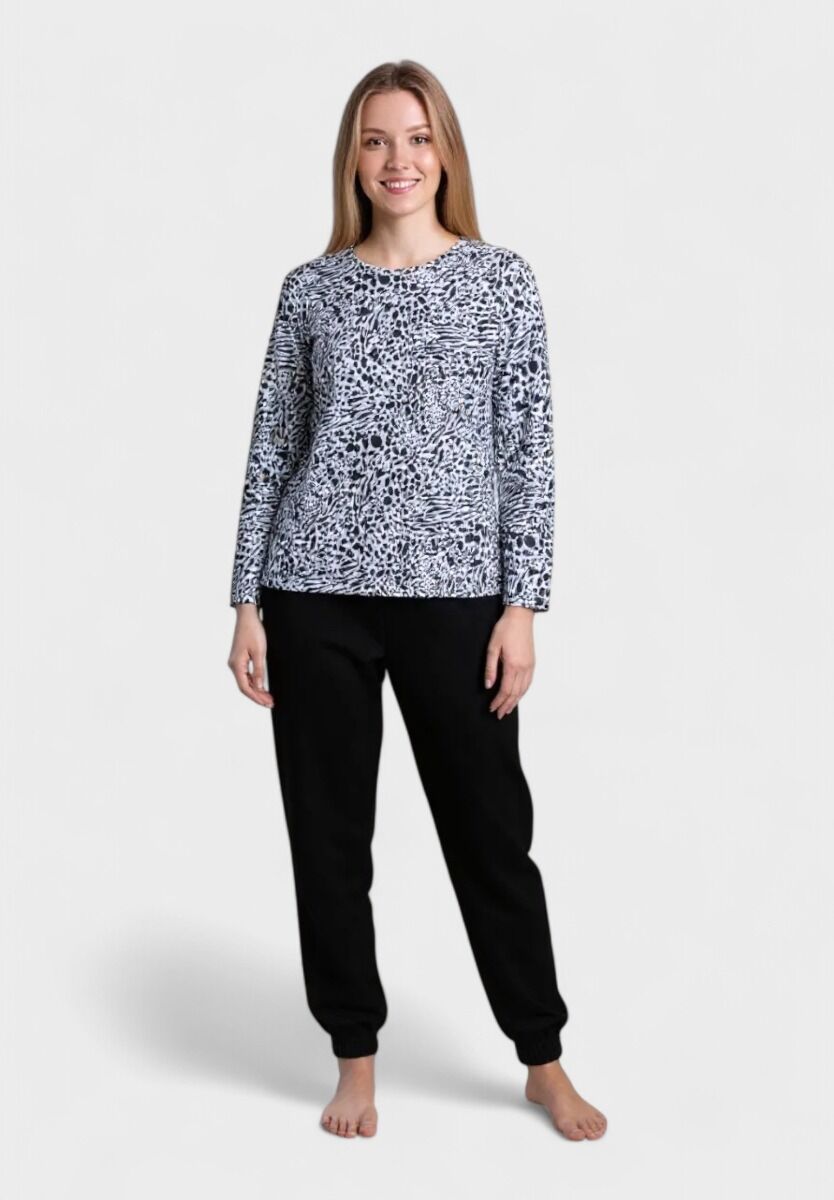 Η γυναικεία βαμβακερή πιτζάμα Cherry Underwear Wild Spirit Light Blue είναι η απόλυτη επιλογή για άνεση και στυλ στο σπίτι. Η μπλούζα σε light blue απόχρωση με μοναδικό animal print σχέδιο δίνει δυναμικό και μοντέρνο χαρακτήρα, ενώ το μαύρο παντελόνι με λάστιχο στη μέση και στα μπατζάκια προσφέρει πρακτικότητα και τέλεια εφαρμογή.