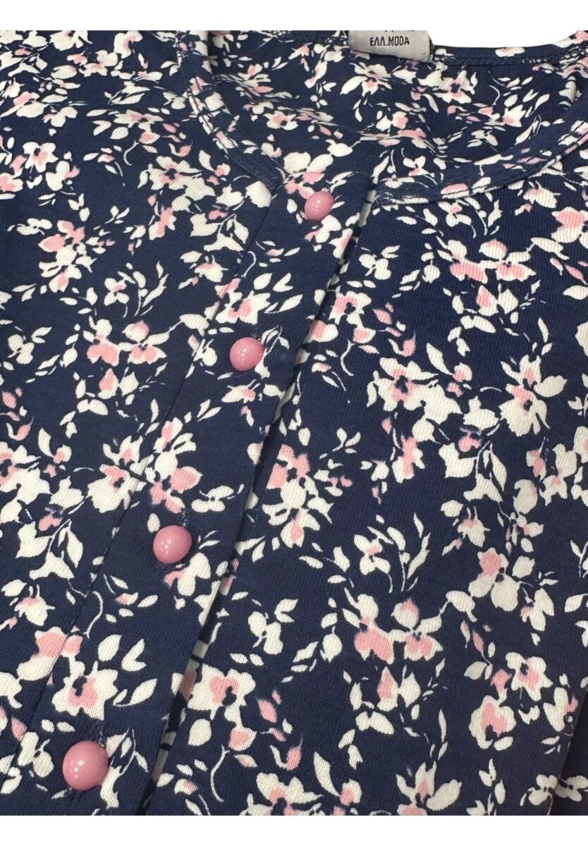 Γυναικεία πιτζάμα από τη Collection, σε κομψό navy floral σχέδιο. Διαθέτει μπλούζα με μακρύ μανίκι και στρογγυλή λαιμόκοψη, διακοσμημένη με μικρά λουλούδια σε αποχρώσεις λευκού και ροζ, καθώς και διακριτικό φιογκάκι που χαρίζει θηλυκή πινελιά. Το παντελόνι είναι μονόχρωμο σε navy χρώμα, με άνετη εφαρμογή. Κατασκευασμένη από ύφασμα 70% βαμβάκι και 30% πολυεστέρα, προσφέρει απαλή υφή, ζεστασιά και άνεση για όλες τις ώρες ξεκούρασης. Ιδανική επιλογή για cozy εμφανίσεις στο σπίτι.
