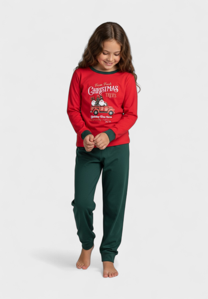 Παιδική χριστουγεννιάτικη πιτζάμα Nina Club σε εντυπωσιακό κόκκινο και πράσινο χρώμα.