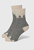 Ζήσε τον χειμώνα με απόλυτη άνεση και στιλ με τη γυναικεία μάλλινη κάλτσα Pro Socks Snowy Pines σε καλαίσθητο γκρι & εκρού. Το απαλό lambswool (53%) προσφέρει φυσική θερμομόνωση και εξαιρετική ζεστασιά, ενώ η viskose και η polyamide χαρίζουν τέλεια εφαρμογή, ελαστικότητα και αντοχή στην καθημερινή χρήση.