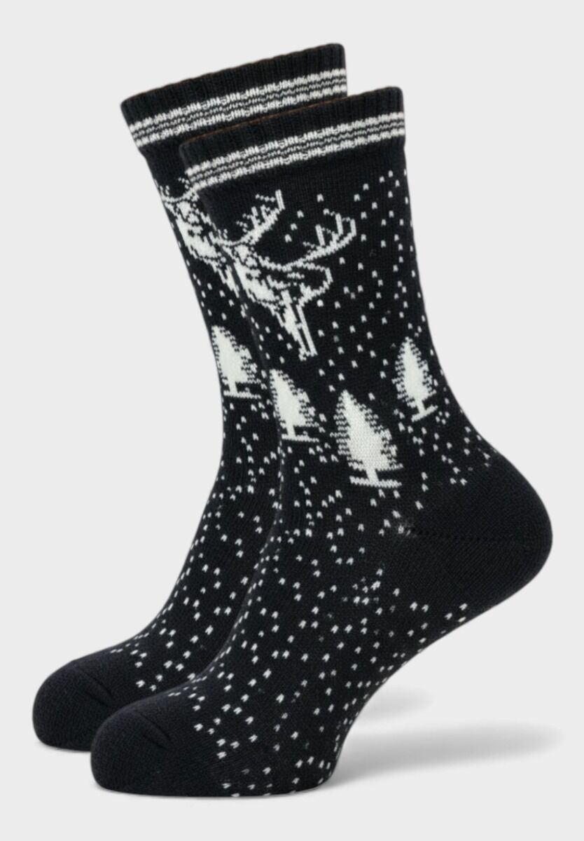 Ζήσε τον χειμώνα με στυλ και απόλυτη ζεστασιά με τις γυναικείες μάλλινες κάλτσες Pro Socks "Winter Stag Wool Socks – Black Spark Edition".