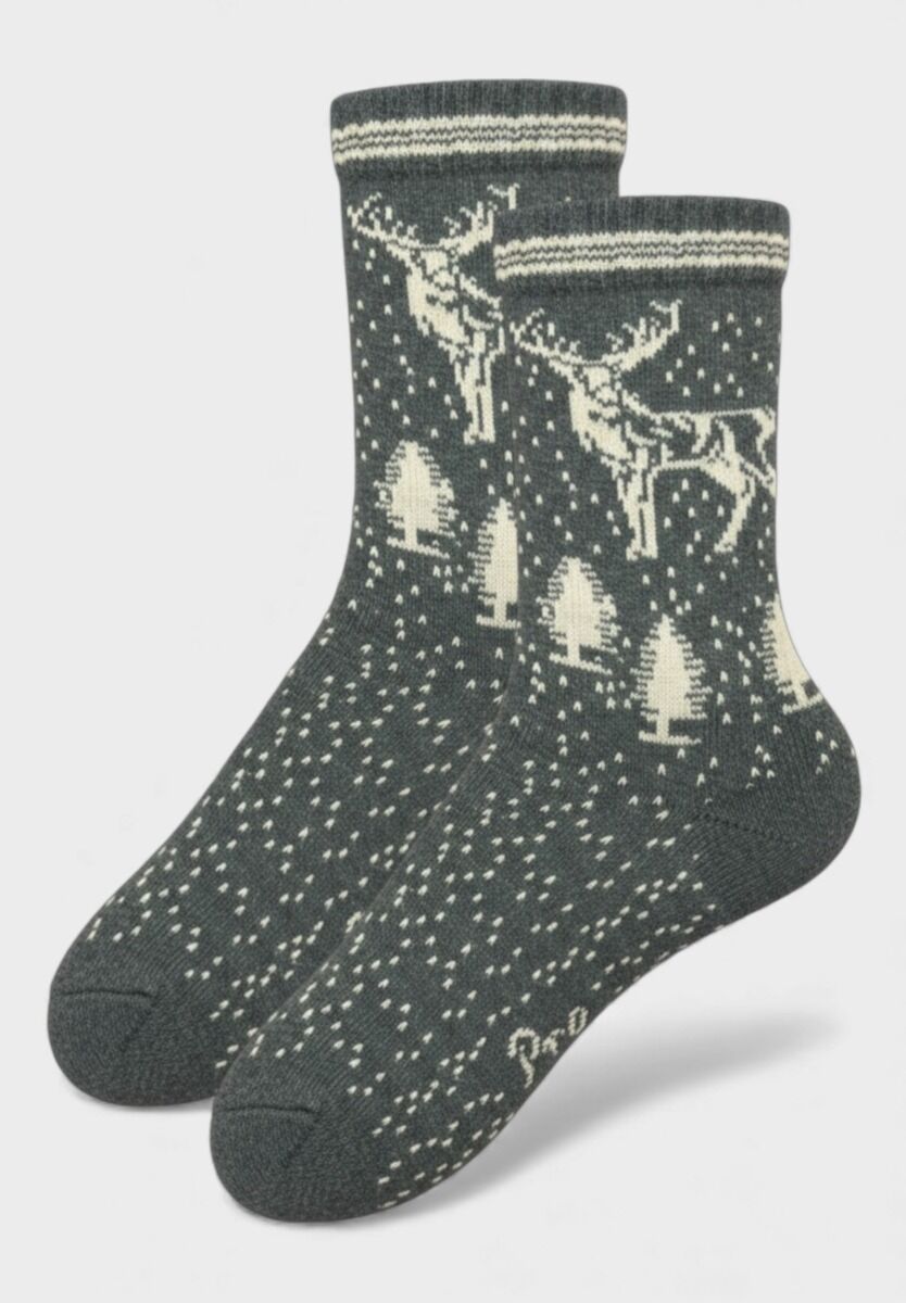 Ζήσε την απόλυτη χειμωνιάτικη άνεση με τις γυναικείες μάλλινες κάλτσες Pro Socks Snowy Reindeer σε βαθύ forest green χρώμα. Με nordic σχέδιο τάρανδου και χιονόπτωση, συνδυάζουν τέλεια την cozy διάθεση του χειμώνα με την καθημερινή πρακτικότητα.